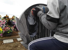 Далее мы полностью заполировали старый портрет и всю надпись, сделали это прямо на кладбище, не перемещая сам памятник.